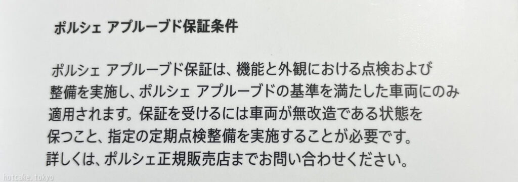 ただ、ポルシェはアプルーブド保証を世界で提供しています。