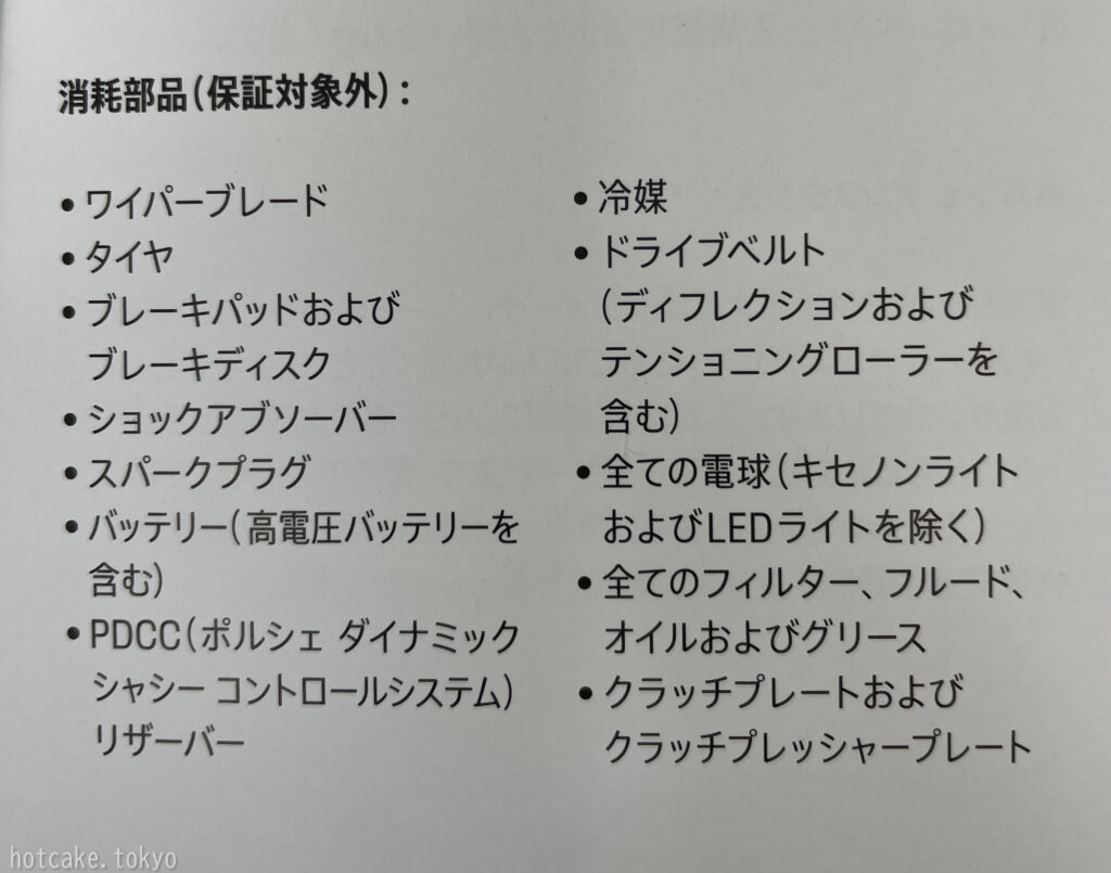 つまり、ポルシェセンター以外で消耗品を交換した場合、故障が発生しても、保証されない場合があるということです。