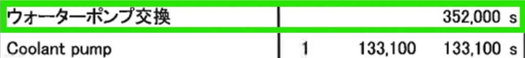 ウォーターポンプの修理費は52万円です。アプルーブド保証に未加入の場合、調査工数5時間として約10万、合計約62万円です。