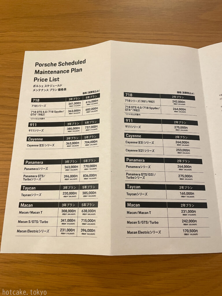 PSMP(Porsche Scheduled Maintenace Plan)のパンフレット。ポルシェセンターでもらえる。